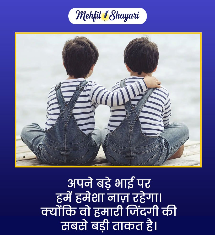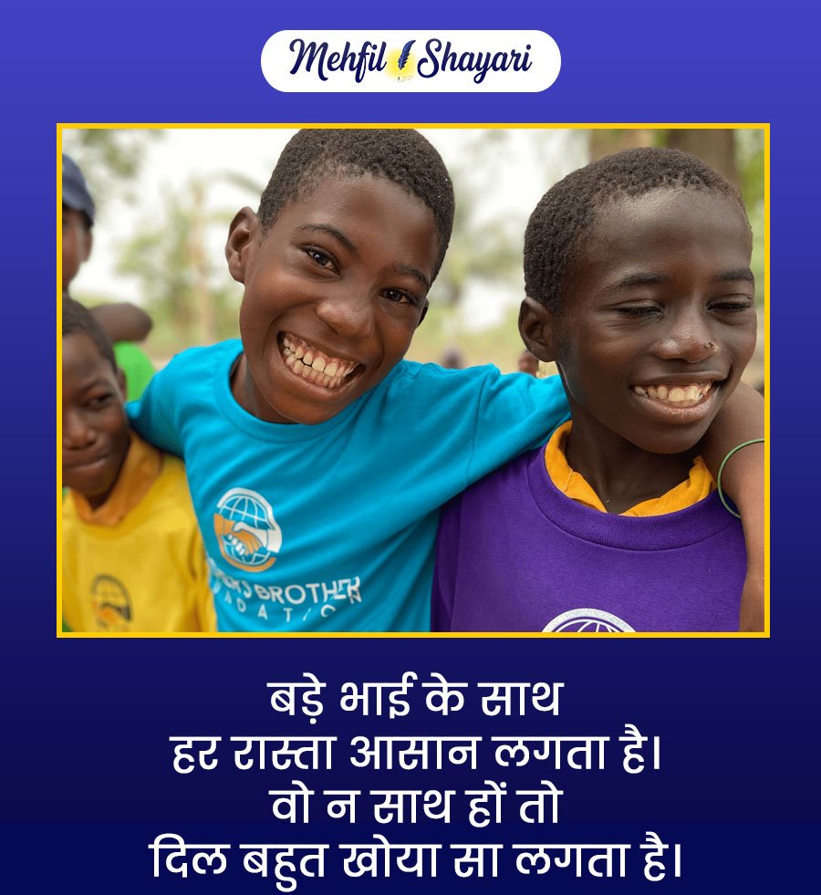 अगर आप अपने बड़े भाई के लिए प्यार, सम्मान और भावनाओं से भरी शायरी ढूँढ रहे हैं, तो यहाँ आपके लिए 30+ शानदार Big Brother Shayari in Hindi दी जा रही हैं। ये शायरियाँ आपके बड़े भाई को यह महसूस करवाएँगी कि उनका आपके जीवन में क्या महत्व है।