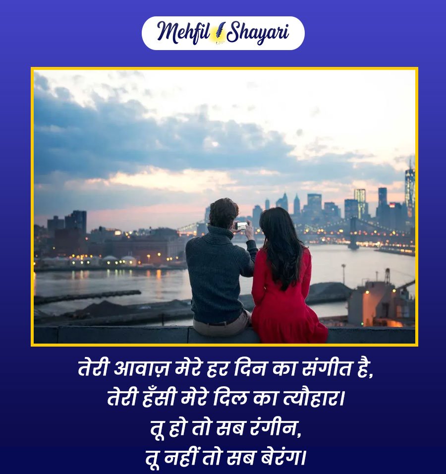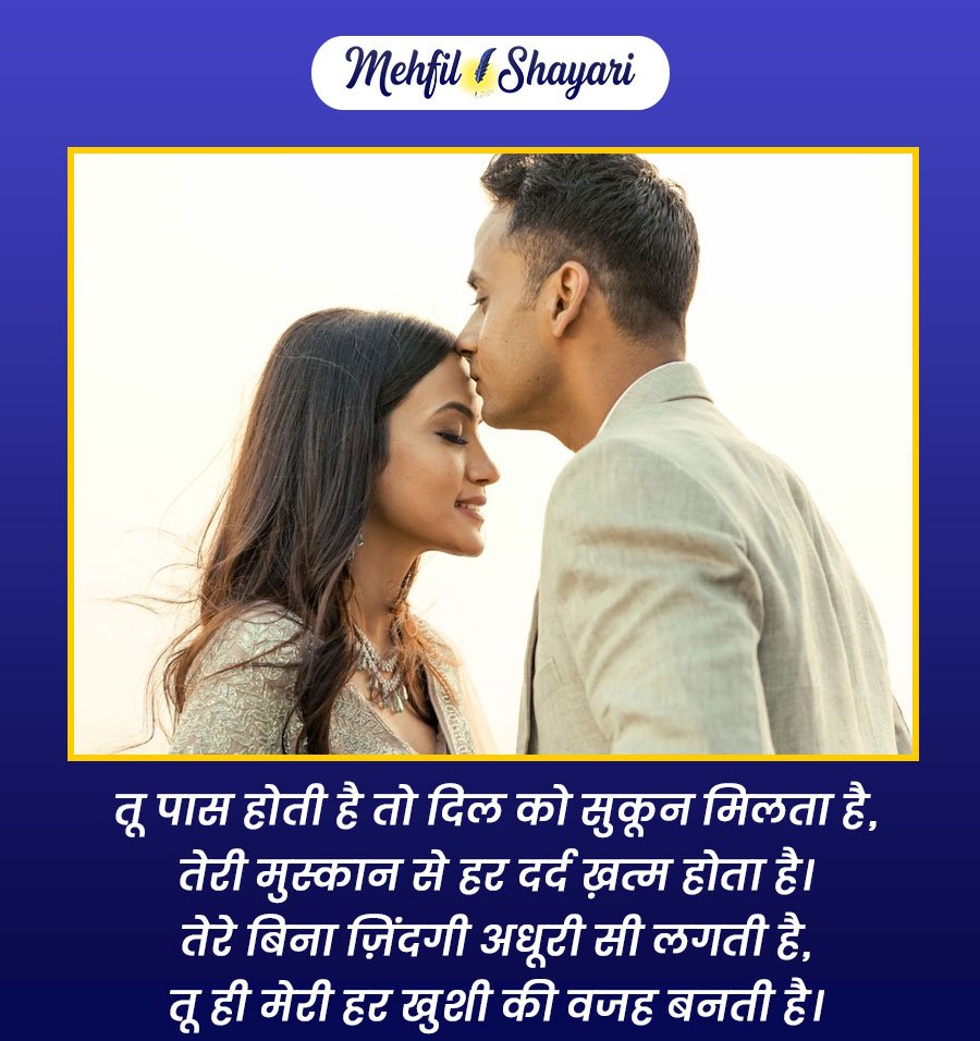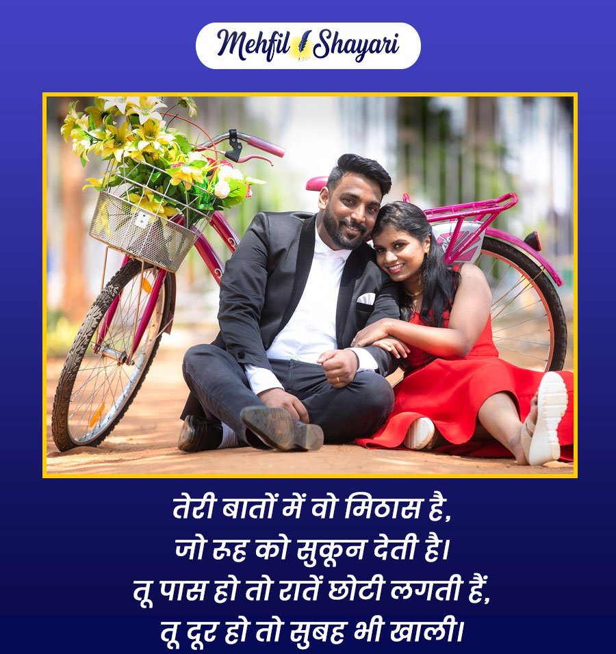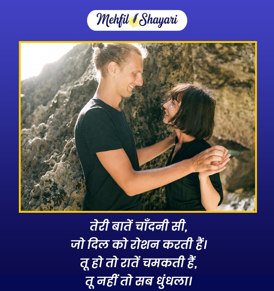 ये शायरियाँ सिर्फ शब्द नहीं, बल्कि वो भावनाएँ हैं जो दिल को छूकर रूह तक उतर जाती हैं। जब प्यार सच्चा हो, तो छोटी-छोटी बातें भी मायने रखती हैं। ये शायरी आपके उस खास इंसान के लिए है, जिसकी मौजूदगी से आपका हर लम्हा रोशन हो जाता है और जिसकी मुस्कान आपकी सबसे प्यारी खुशी बन जाती है।