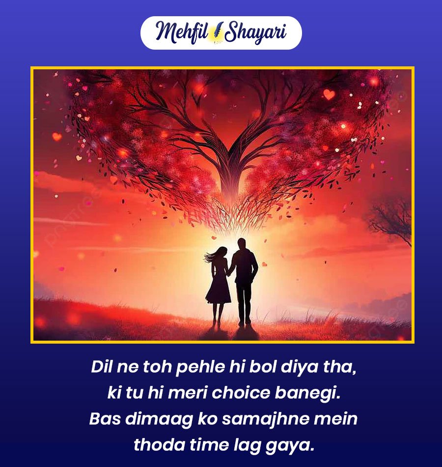Pyaar tab aur khoobsurat lagta hai jab dil ki baatein shabdon mein dhal kar saamne wale tak pohonchti hain. Hinglish mein likhi gayi hindi love shayari in english un logon ke liye hai jo feel Hindi mein karte hain par bolte likhte English mein. Yeh shayari unhi dil ke jazbaaton ko seedhe aur pyaare andaaz mein pesh karti hai.