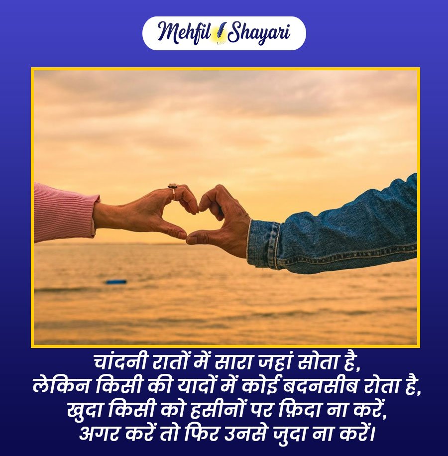 जब भावनाएँ गहरी हों और दिल किसी खास को याद कर रहा हो, तो एक मीठी-सी शायरी ही सबसे अच्छा ज़रिया बन जाती है। चाहे आप पहली बार प्यार जताना चाहें या रिश्ते में फिर से नज़दीकियाँ बढ़ाना चाहें, यह कलेक्शन हर दिल की धड़कन को शब्द देता है।
