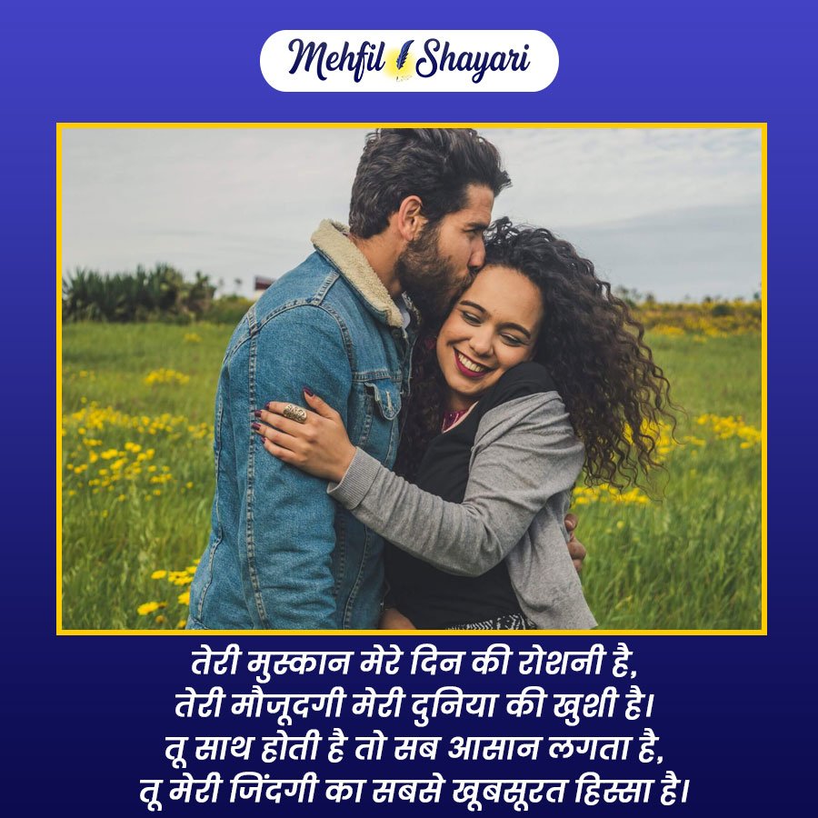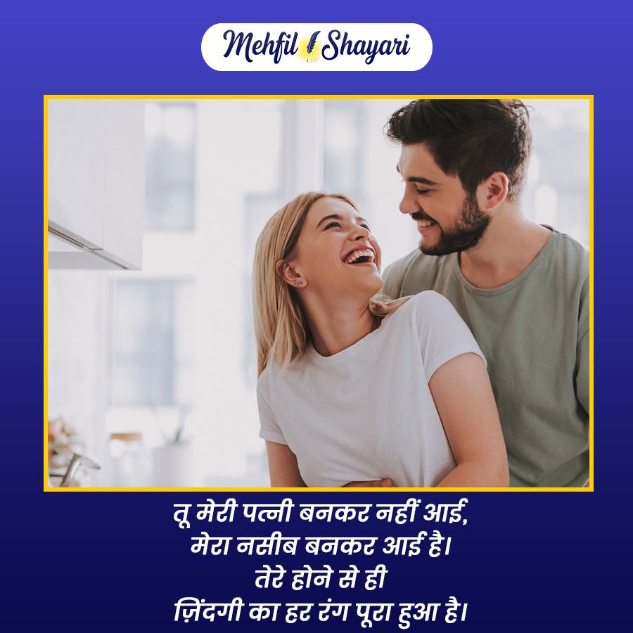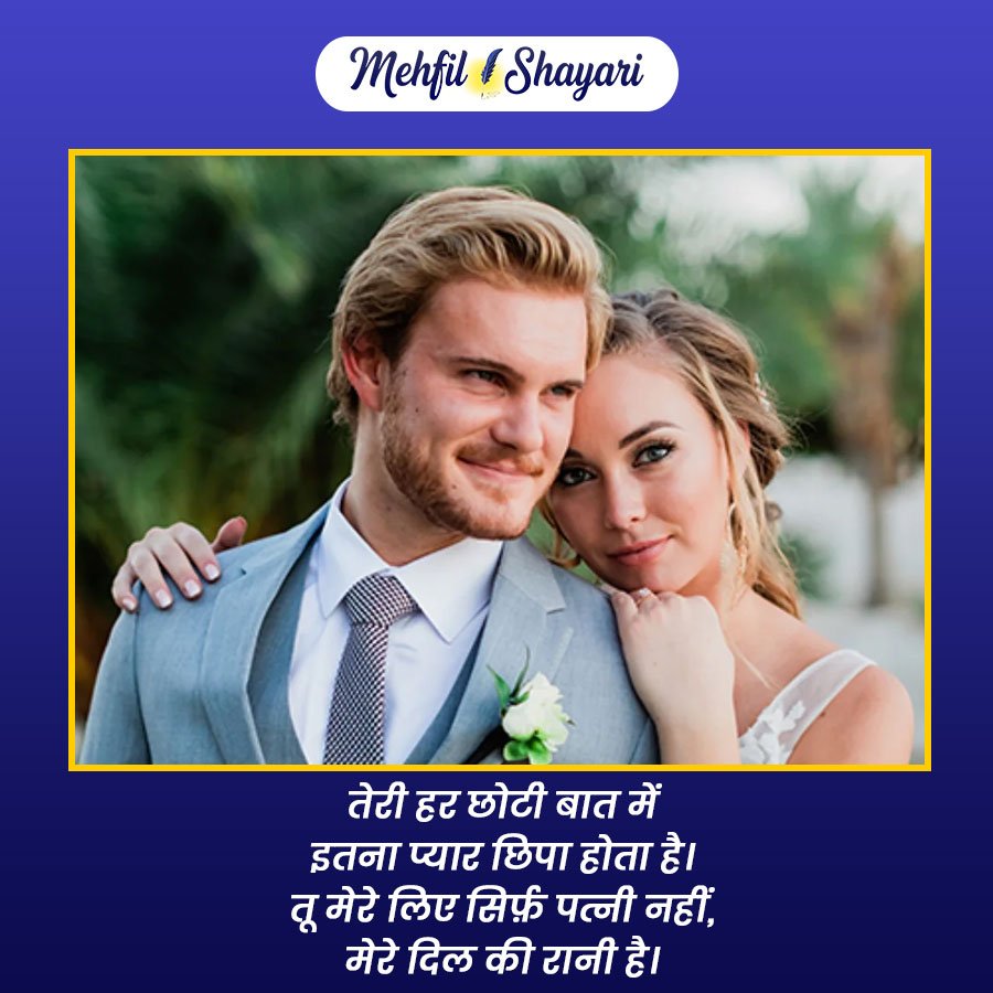 पत्नी वो रिश्ता है जो मोहब्बत, भरोसा और साथ का सबसे खूबसूरत मिलन होता है। जिस घर में पत्नी का प्यार बसता है, वहाँ खुशियाँ खुद चलकर आती हैं। उसकी मुस्कान से लेकर उसकी चिंता तक, हर बात में एक अनोखा अपनापन छुपा होता है। इन्हीं एहसासों को और भी खूबसूरती से बयान करती है love shayari for wife in hindi, जो आपके दिल की भावनाओं को सरल और मीठे शब्दों में पिघलाकर सामने लाती है।