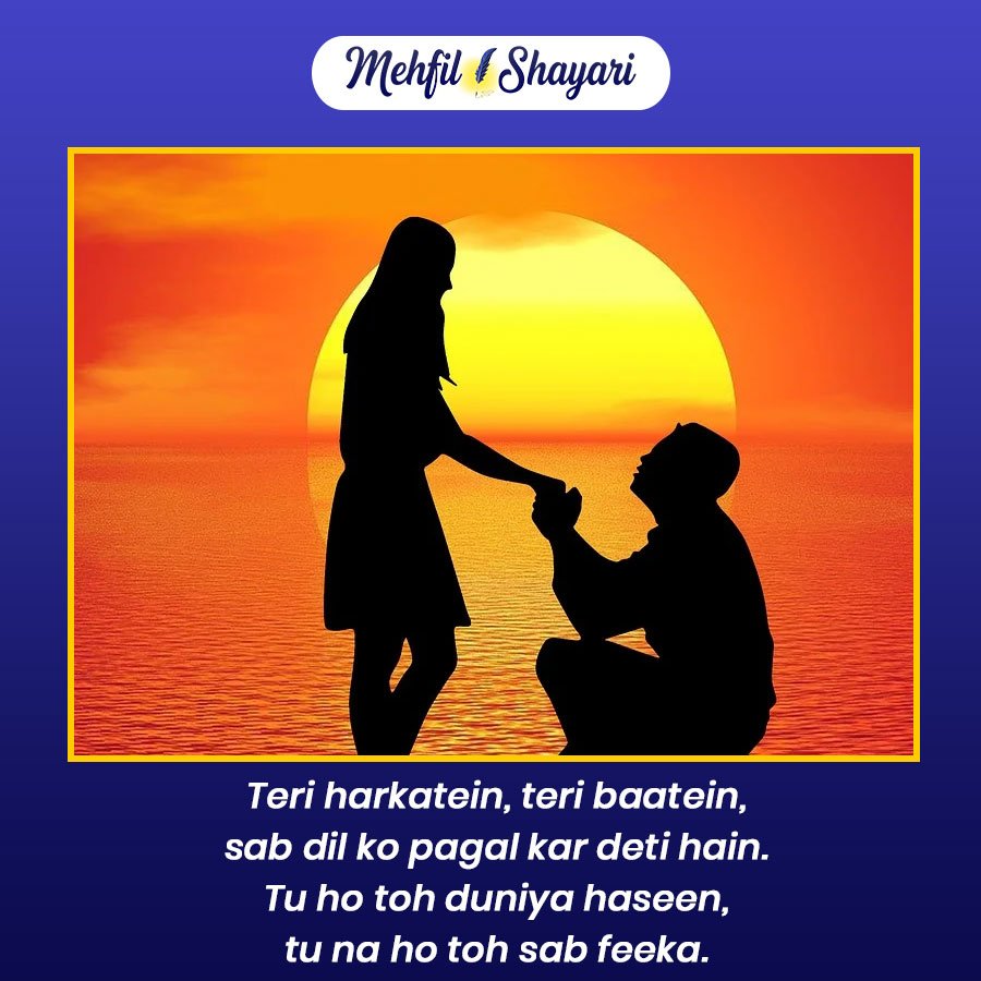 Pyaar tab aur khoobsurat lagta hai jab usey shabdon mein pighla kar kisi ke dil tak pahunchaya jaaye. Aaj kal log Hindi emotions feel karte hain, par likhna English ya Hinglish mein pasand karte hain—aur wahi ehsaas behtar tarike se bayan karti hai love shayari in english hindi, jismein lafz angrezi ke hote hain par dil ki dhadkan poori tarah Hindustani hoti hai. Yeh shayari un logon ke liye hai jo apne pyaar ko modern andaaz mein, par pure emotions ke saath express karna chahte hain.