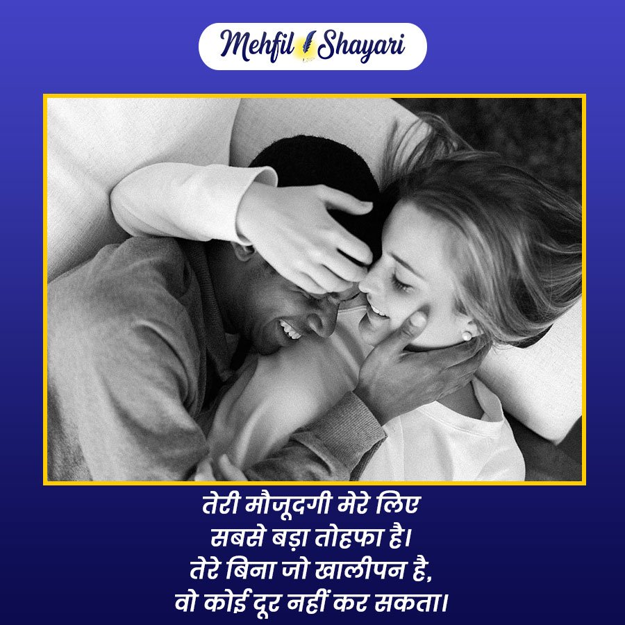 कभी मुस्कान में छिपा प्यार दिल जीत लेता है, कभी हाथों की गर्माहट रूह तक उतर जाती है, और कभी उसकी आंखों का एक नज़रिया पूरी दुनिया को खूबसूरत बना देता है। ये शायरियाँ उसी रोमांटिक एहसास को जगाती हैं—जहाँ प्यार सिर्फ़ देखा नहीं जाता, महसूस किया जाता है। उम्मीद है ये शायरियाँ आपके रिश्ते में और भी मिठास और नज़दीकियाँ भरेंगी।