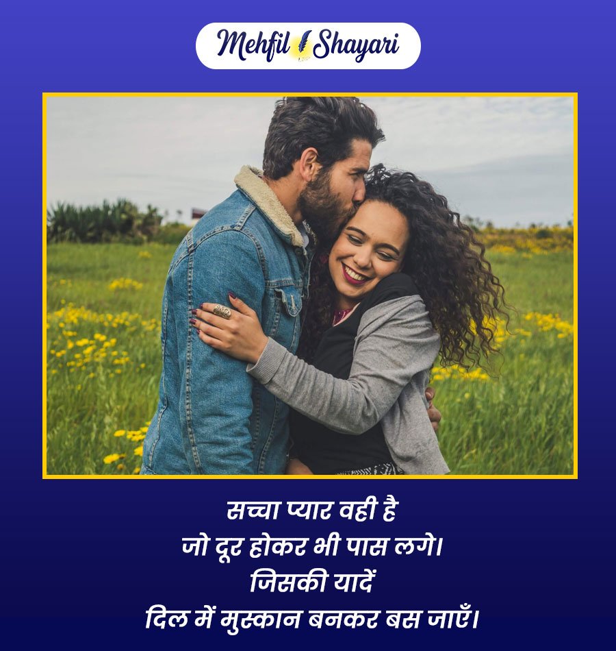 जब प्यार सच्चा हो, तो दूरियाँ भी छोटी लगती हैं, मुश्किलें आसान लगती हैं और हर दिन एक नई खुशबू लेकर आता है। सच्चा रिश्ता टूटा नहीं करता, बस और गहरा होता जाता है। ये शायरियाँ उसी सच्चे और पवित्र प्रेम की दास्तान हैं, जो हर धड़कन में बसता है और हमेशा ज़िंदा रहता है।